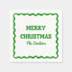 Celebrate the holiday season with these chic "Merry Christmas" napkins, designed for a refined and personalised touch at your holiday gatherings. Featuring a festive green wavy border and customisable family name text, these napkins bring a blend of classic charm and contemporary style to your table decor. Perfect for Christmas dinners, family gatherings, or festive parties, they effortlessly add a festive elegance to any celebration. Personalise with your family name to create a memorable holiday accent that guests will love. Ideal for those looking for an elegant, unique holiday touch.