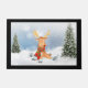 Fun Christmas doormat with a cute moose who falls down on his ice skates in the snow.