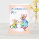 A fun Mother's Day Greeting Card for your mother with a little mouse, wearing an apron, giving his mother a cheesecake for Mother's Day. The mice are hand-painted with watercolour pencils and the front cover greeting is, 'HAPPY MOTHER'S DAY, Mam!' The inside message is just a suggestion and you can easily edit it or delete it if you wish.