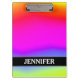 This clipboard design features a fun, rainbow-like multicolored gradient pattern featuring various shades of colours like yellow, orange, red, pink, purple, blue and green. It also features a custom name.