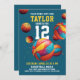 Score big with our fun, cool and colourful basketball birthday party invitation! Featuring a burst of vibrant basketballs against a navy blue backdrop, this invitation sets the stage for an indoor or outdoor birthday celebration. With modern, bold typography, it's perfect for your kid's or teenager's birthday bash. Personalise it with your own text and enjoy both print and digital formats, available for instant download. Get ready to shoot some hoops and celebrate in style!