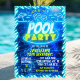 Fun Neon Glow Blue Green Pool Party Boys Birthday Invitation