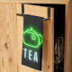Fun kitchen towel design features neon green teapot with "Tea" neon text