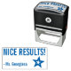 This positive rubber stamp design features the motivational message "NICE RESULTS!" and a personalised teacher's or educator's name. It could be used by a teacher or educator when marking assignments, to acknowledge that the student has done well.