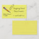 A business card  with yellow lined paper, a paper clip and a pencil stub. The text looks as though it was written with the pencil. An very unusual card your customers won't forget.