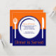 Fun orange and blue dinner invitation that is suitable for casual birthday dinners, home buffets, restaurant gatherings or any dinner party of choice. The design is very suggestive and immediately tells your guests that there is something delicious in store. Feel free to re-size, re-colour and edit the text as desired.