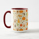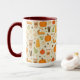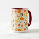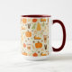 This design showcases a delightful fall-themed pattern filled with cosy autumn elements. The design includes illustrations of pumpkins, slices of pumpkin pie topped with whipped cream, warm fall beverages in to-go cups, and butternut squash. Scattered among these are cinnamon sticks, star anise, sprigs of greenery, autumn leaves, acorns, and small berries, all set against a soft cream background. The pattern exudes a warm and inviting atmosphere, perfect for celebrating the flavours and colours of the autumn season.