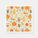 This design showcases a delightful fall-themed pattern filled with cosy autumn elements. The design includes illustrations of pumpkins, slices of pumpkin pie topped with whipped cream, warm fall beverages in to-go cups, and butternut squash. Scattered among these are cinnamon sticks, star anise, sprigs of greenery, autumn leaves, acorns, and small berries, all set against a soft cream background. The pattern exudes a warm and inviting atmosphere, perfect for celebrating the flavours and colours of the autumn season.
