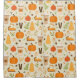 This design showcases a delightful fall-themed pattern filled with cosy autumn elements. The design includes illustrations of pumpkins, slices of pumpkin pie topped with whipped cream, warm fall beverages in to-go cups, and butternut squash. Scattered among these are cinnamon sticks, star anise, sprigs of greenery, autumn leaves, acorns, and small berries, all set against a soft cream background. The pattern exudes a warm and inviting atmosphere, perfect for celebrating the flavours and colours of the autumn season.