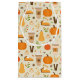 This design showcases a delightful fall-themed pattern filled with cosy autumn elements. The design includes illustrations of pumpkins, slices of pumpkin pie topped with whipped cream, warm fall beverages in to-go cups, and butternut squash. Scattered among these are cinnamon sticks, star anise, sprigs of greenery, autumn leaves, acorns, and small berries, all set against a soft cream background. The pattern exudes a warm and inviting atmosphere, perfect for celebrating the flavours and colours of the autumn season.