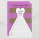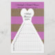 This fun bridal shower word game is a word game with the names of the bride and groom as the focal point. Guests try to see how many words they can make out of the couple's names. The design features alternating orchid and burlap stripes on the front where a bridal gown sits with space to write words. The beautiful orchid colour continues on the back of the game. Copyright henishouseofpaper