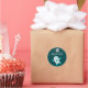 This cute boy's birthday party round sticker has an out of this world space theme! The background has a dark teal colour with lots of yellow, white, and grey stars in the background. There is an astronaut on the bottom with a moon at the top. Out of this World Birthday Party is written in the middle.