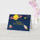 This modern fun outerspace rocket girl greeting Card with a rocket ship and planet on a dark blue star filled sky background is the perfect for any birthday party or special event in style. Personalise with your own special text, and use it for the party or event of your choice. Some Graphics by Prettygrafik design at store etsy.com/shop/Prettygrafikdesign
