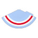 This fun, sporty design features a white bottom edge stripe split with a slim bright red stripe against a pastel blue background.