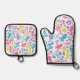 Fun pastel colourful vibrant shapes oven mitt & pot holder set