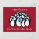 Spread some holiday cheer with our adorable, personalised Christmas postcards featuring a fun family of penguins. Perfect for sending warm wishes to your friends and loved ones.