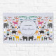 Featuring all sorts of jungle, safari, zoo animals, pets, birds and wildlife. A monster and a dinosaur mmight have sneaked in there too. Perfect for a fun animal lover's baby shower celebration. Change the text to personalise. Original art by Nic Squirrell.