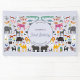 Featuring all sorts of jungle, safari, zoo animals, pets, birds and wildlife. A monster and a dinosaur mmight have sneaked in there too. Perfect for a fun animal lover's first birthday party celebration. Change the text to personalise. Original art by Nic Squirrell.