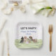 Celebrate your precious pet's birthday with these cute and fun puppy dog party paper plates featuring puppies, party hats and confetti. The words "Let's Pawty" are in a fun paw print text. Use the provided templates to personalise them with your pet's age and name. You can also change the blue and/or black text colours to your favourite. You could also change the "Happy 5th Birthday" to "Welcome Home".
