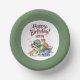 This cute personalised green dinosaur happy birthday paper bowl design shows adorable watercolor dinosaurs of various colours. This design also shows festive confetti as well as the phrase "happy birthday". The main colour scheme is greens, reds, and blues. You can add your name. Enjoy this fun kids birthday party paper bowl design!
