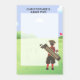 A fun cartoon design featuring a golfer in vintage attire standing in the rough looking towards the green and flag. The golfer is carrying a golf bag with golf clubs. unique golf gift for the keen golfer or golf fan