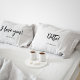 Celebrate love with this fun and modern couples pillowcase set, featuring the playful phrases “I love you!” and “Ditto!”. Designed with clean black typography on classic white, this matching set is perfect for couples who love simple, meaningful design with a touch of humour.