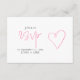 Set the tone for your wedding celebration with this sophisticated RSVP insert card, featuring a vibrant hand drawn pink love heart that radiates whimsy and romance. The bright heart sketch, paired with elegant script and crisp contact details, creates an inviting, joyful ambiance for your guests. Designed for seamless wedding organisation, this response card balances a playful, eye catching focal point with modern wedding stationery style making it the perfect addition to your set of party invitations. The clean white background highlights both the charming illustration and the RSVP details, ensuring replies are gathered with ease and a touch of heartfelt flair.