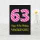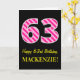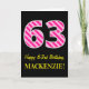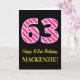 Fun Pink Striped "63"; Happy 63rd Birthday; Name Card
