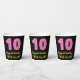 Fun Pink Stripes “10”: Happy 10th Birthday + Name Paper Cups