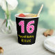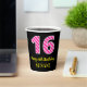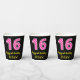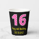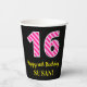 Fun Pink Stripes “16”: Happy 16th Birthday + Name Paper Cups