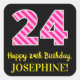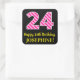 Fun Pink Stripes “24”: Happy 24th Birthday + Name Square Sticker