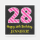 Fun Pink Stripes "28"; Happy 28th Birthday; Name Napkin
