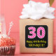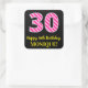 Fun Pink Stripes “30”: Happy 30th Birthday + Name Square Sticker