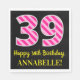 Fun Pink Stripes "39"; Happy 39th Birthday; Name Napkin