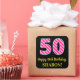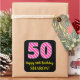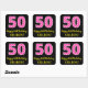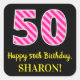 Fun Pink Stripes “50”: Happy 50th Birthday + Name Square Sticker