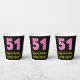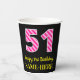 Fun Pink Stripes “51”: Happy 51st Birthday + Name Paper Cups