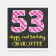 Fun Pink Stripes "53"; Happy 53rd Birthday; Name Napkin