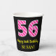Fun Pink Stripes “56”: Happy 56th Birthday + Name Paper Cups