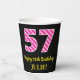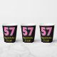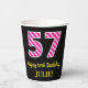 Fun Pink Stripes “57”: Happy 57th Birthday + Name Paper Cups