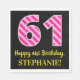 Fun Pink Stripes "61"; Happy 61st Birthday; Name Napkin