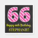 Fun Pink Stripes "66"; Happy 66th Birthday; Name Napkin