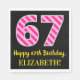 Fun Pink Stripes "67"; Happy 67th Birthday; Name Napkin
