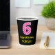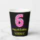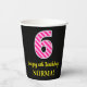 Fun Pink Stripes “6”: Happy 6th Birthday + Name Paper Cups