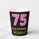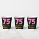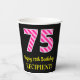 Fun Pink Stripes “75”: Happy 75th Birthday + Name Paper Cups