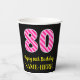Fun Pink Stripes “80”: Happy 80th Birthday + Name Paper Cups