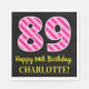 Fun Pink Stripes "89"; Happy 89th Birthday; Name Napkin
