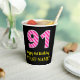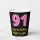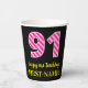 Fun Pink Stripes “91”: Happy 91st Birthday + Name Paper Cups