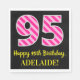 Fun Pink Stripes "95"; Happy 95th Birthday; Name Napkin