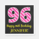 Fun Pink Stripes "96"; Happy 96th Birthday; Name Napkin