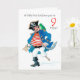 A fun 9th Birthday Card, with a jolly pirate and his parrot on a white background, from a watercolour painting by Judy Adamson. You can edit the inside text if you wish.